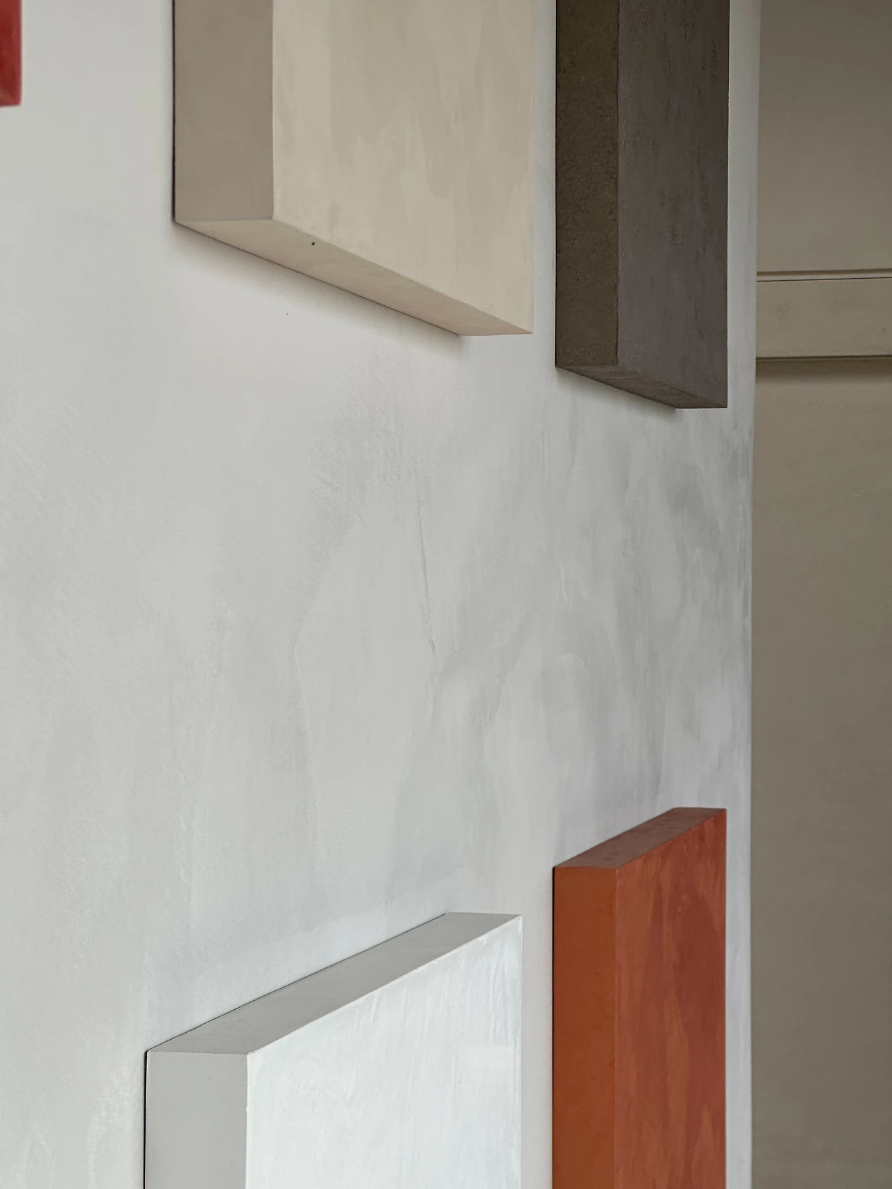 선택한 재료는 '마모리노'이다. 고운 대리석이 포함된 미장재로 매끈히 눌러 마감한 부분은 은은한 반광을 띤다. 작업 방식은 프라이머를 1회 도포하고 흙손으로 2회가량 미장하는 방식이다. 국내 여러 기업과 시공업체에서 이 재료를 활용한 포트폴리오를 찾을 수 있었다. 상업 공간과 거주 공간에도 사용하는 믿을 만한 소재라고 느껴졌다. 단가는 있는 편이지만 생각에 가깝게 공간을 구현할 수 있게 되었다! 눈으로 확인하기 위해 우리는 일산지사로 향했다.
