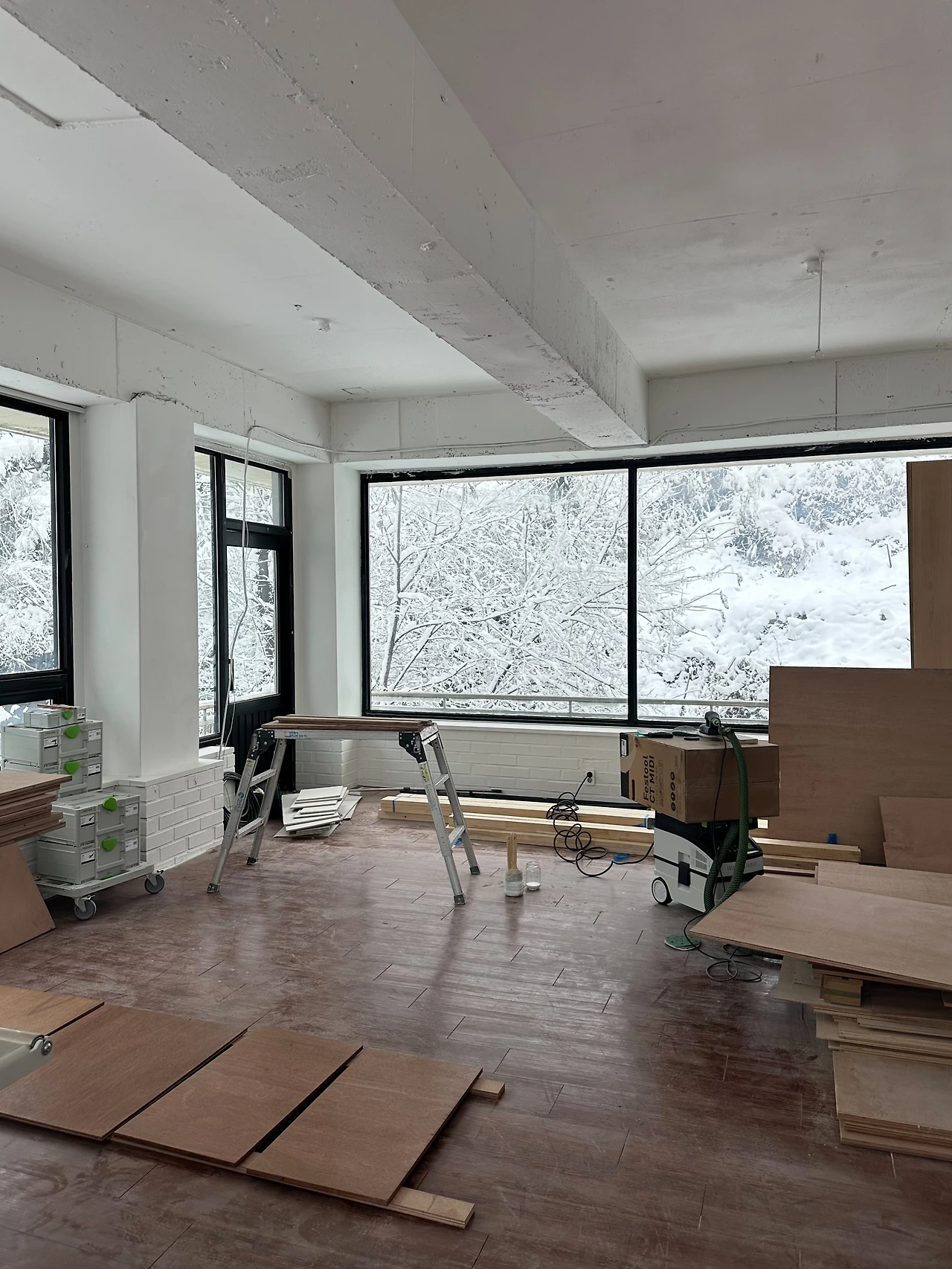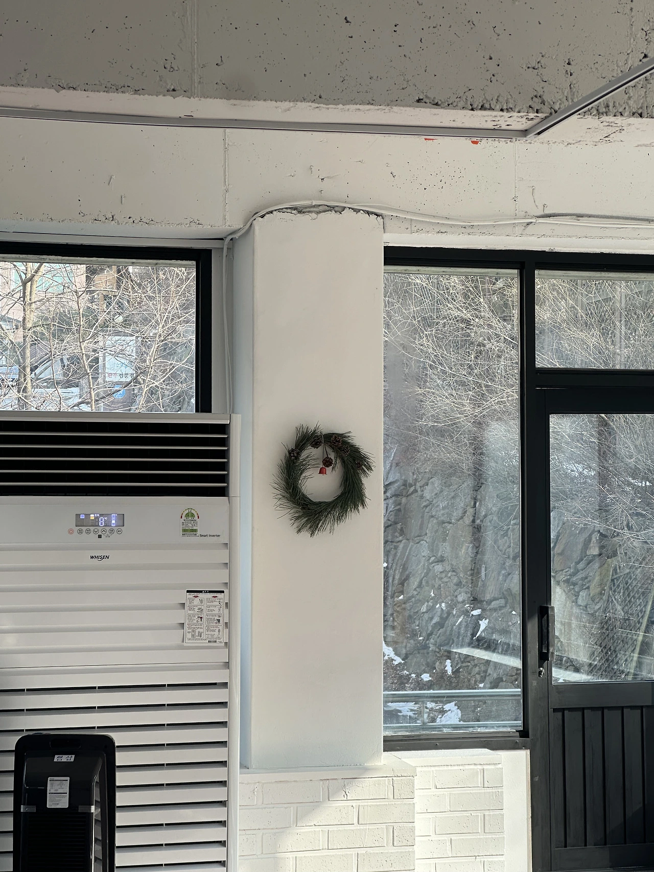 작업을 시작한 바로 다음날은 발이 푹 빠질 만큼 눈이 내렸다. 작업실에서 맞이한 첫눈이자, 그해 눈이 가장 많이 쌓인 날이기도 했다. 발자국 하나 없는 이곳이 인적 드문 시골처럼 느껴졌다. 아무도 밟지 않은 눈 위를 꾹꾹 눌러 걷는 게 왜 그리 기분 좋은지. 한동안 오빠와 눈 덮인 풍경을 만끽했다.