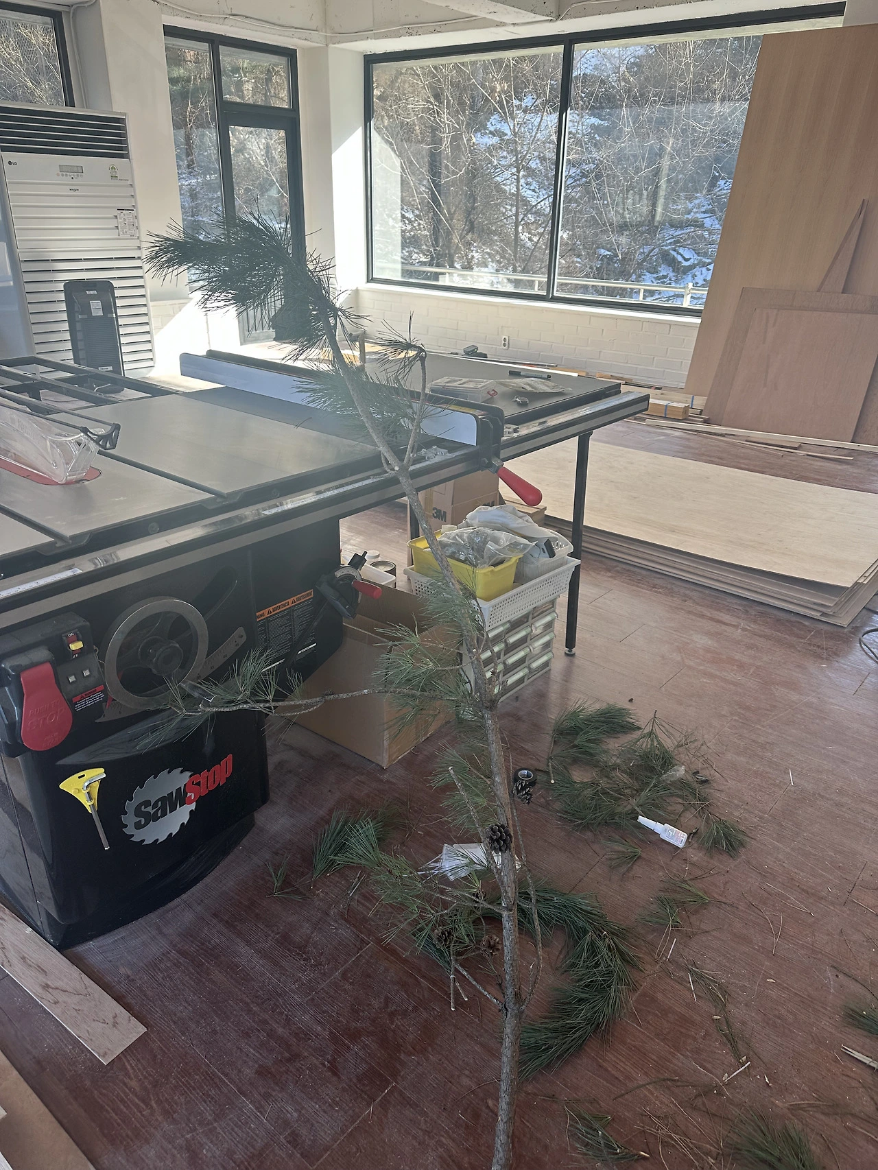 정리가 덜 된 작업실에서 변변한 작업대 없이 가구를 만들다 보니, 바닥에 쭈그리고 앉거나 엉거주춤한 자세로 일했다. 그게 아주 체력을 갉아먹는 요인이다. 작업대는 꼭 신경 써서 만들자고 마음먹었던 순간이다. 정신없이 만들다 보니 얼추 집기의 형태도 갖춰졌다.