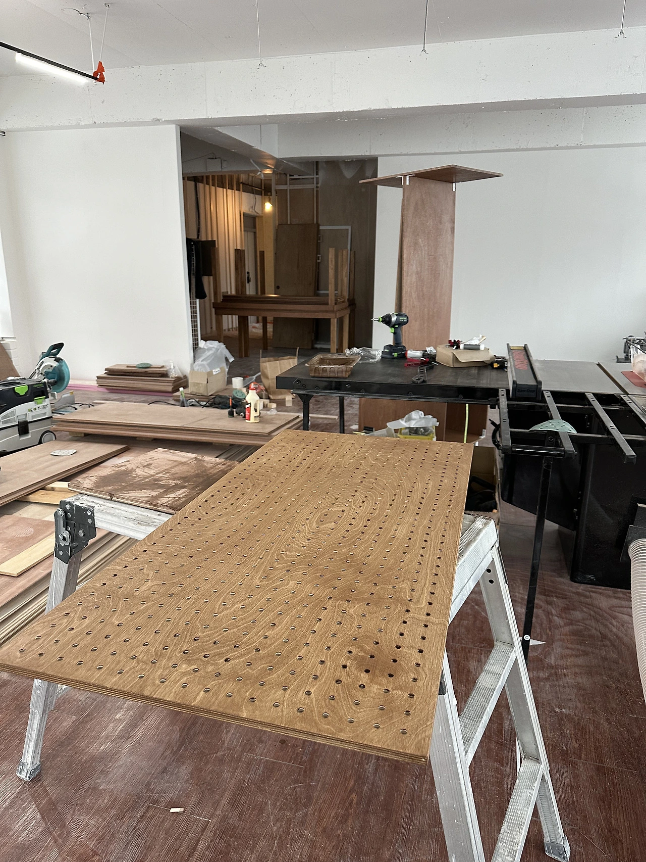제품을 진열할 집기는 크기도 제각각이었고, 개수는 11개 정도였다. 주로 악세서리를 올릴 테이블이나 선반을 만들기로 했다. 살면서 이렇게 크고 많은 걸 한꺼번에 만들어본 건 처음이었다.