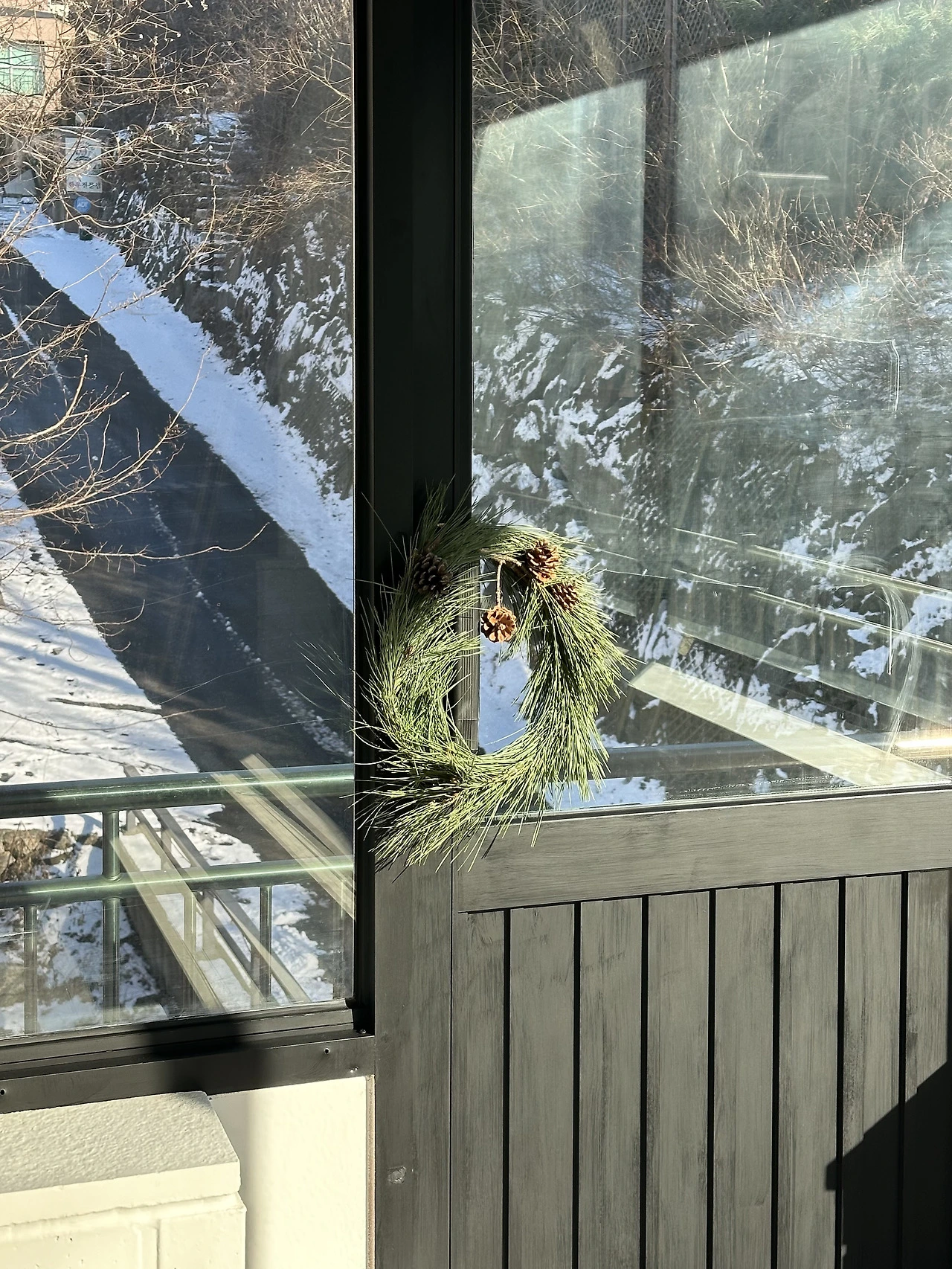 난 트리보다는 리스를 선호했다. 자리 차지도 안 하고 시즌 끝나면 정리해 넣어야 하는 트리가 번거롭게 느껴졌다. 그렇다고 리스를 살 생각은 없었다. '사야 할 게 많은데 지금 내가 리스를 살 때가 아니지.' 란 생각에. 그런데 크리스마스가 얼마 남지 않았을 때 큰 나뭇가지를 본 것이다. 쓸만하겠다 생각이 들어 몸보다 큰 가지를 들고 올라왔다. 어떠한 장식도 없는 그냥 나무일뿐인데 그게 참 좋았다. 다시 쓸모 있어진 게 좋았다. 내게는 의도치 않은 아름다움이 이런 것이다.