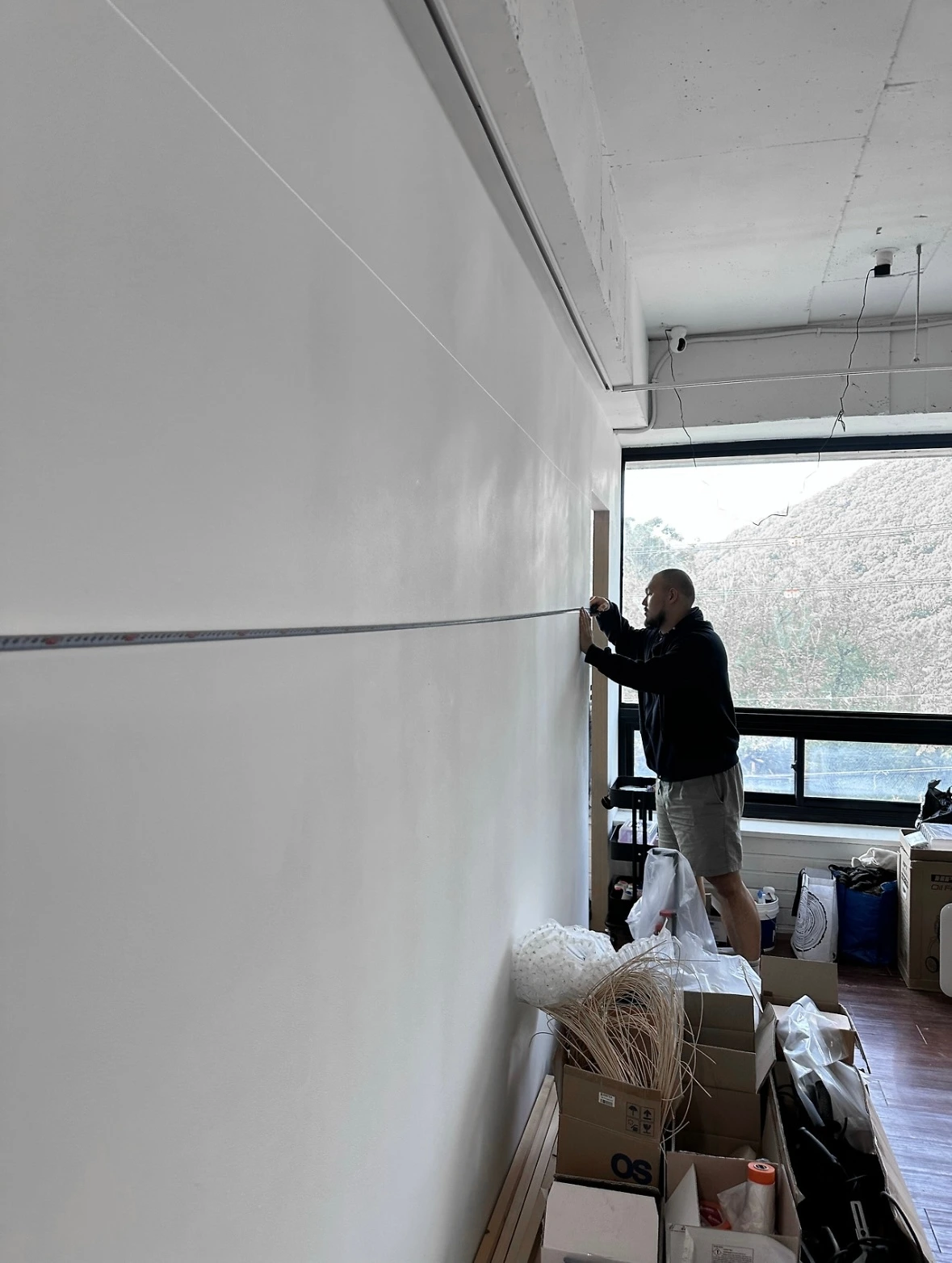 가벽은 오빠가 직접 만들었기 때문에 뼈대가 어디쯤 위치한 지 대략 알고 있었다. 그래도 몇 군데는 헛방으로 뚫기도 했지만, 결국 타공판을 튼튼히 지지할 곳에 구멍을 냈다.