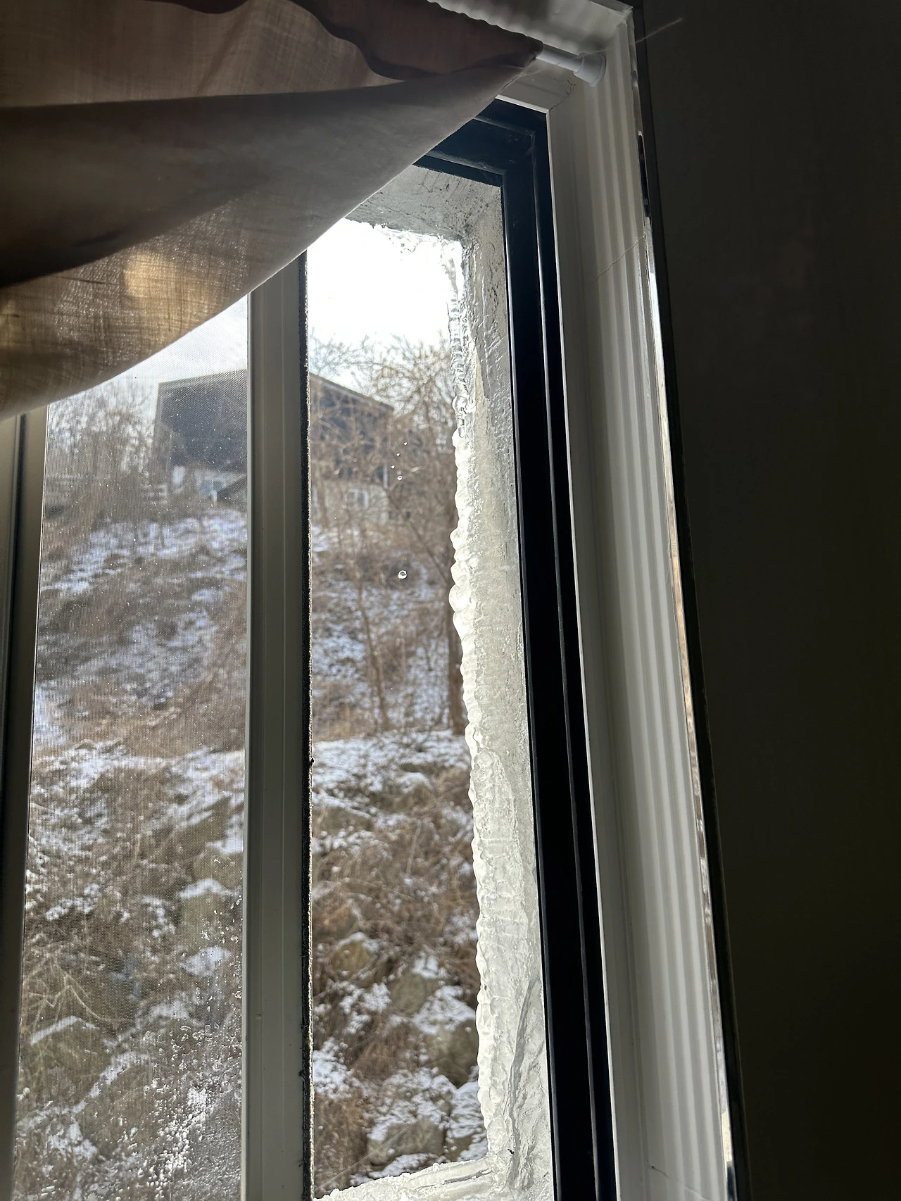 물이 흘러 얼은 곳이 작업실의 화장실 가까이 위치한 곳이라, 큰 문제가 생기지 않았기를 바라며 층계를 올랐다. 작년은 바로 위층에서 터져버린 배관에 의해 화장실 천장에 물이 가득 새었던 일이 있었다. 그 결과로 며칠이 걸려 마감한 천장 도색이 변색되기도 했다.