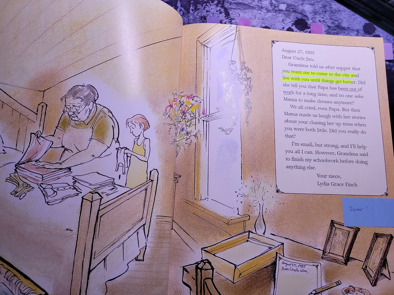 이 책의 기본 구성은 편지 형식으로 전개된다. 소녀의 이름은 '리디아 그레이스 핀치'로 짐 삼촌에게 쓰는 편지로 시작한다. 이 소녀가 외삼촌에게 편지를 쓴 이유가 무엇인지 궁금해할 찰나 편지에 그 이유와 다짐이 나와있다. 리디아는 시골로 추정되는 곳에서 할머니, 부모님과 함께 살고 있었다. 경제적으로 형편이 안 좋아져서 아버지는 오랫동안 일을 하지 못하고 있었고 이를 알게 된 짐 삼촌이 당분간 리디아와 함께 살며 돕겠다는 제안이 있었다. 리디아는 간접적으로 이를 표현하며 도시에 사는 삼촌에게 보내는 편지에 자신은 체구가 작지만 튼튼하고 삼촌을 도울 것이며 학교 공부도 열심히 하겠다는 다짐을 보낸다. 도시에 사는 삼촌은 빵을 구우며 빵집을 운영하는 사람이다. 홀로 기차에 오른 리디아는 그때부터 수신자를 할머니, 엄마 혹은 아빠로 하고 집으로 소식을 전하는 편지를 쓴다.