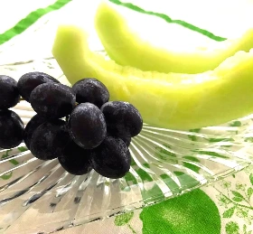 멜론과 포도로 장식.