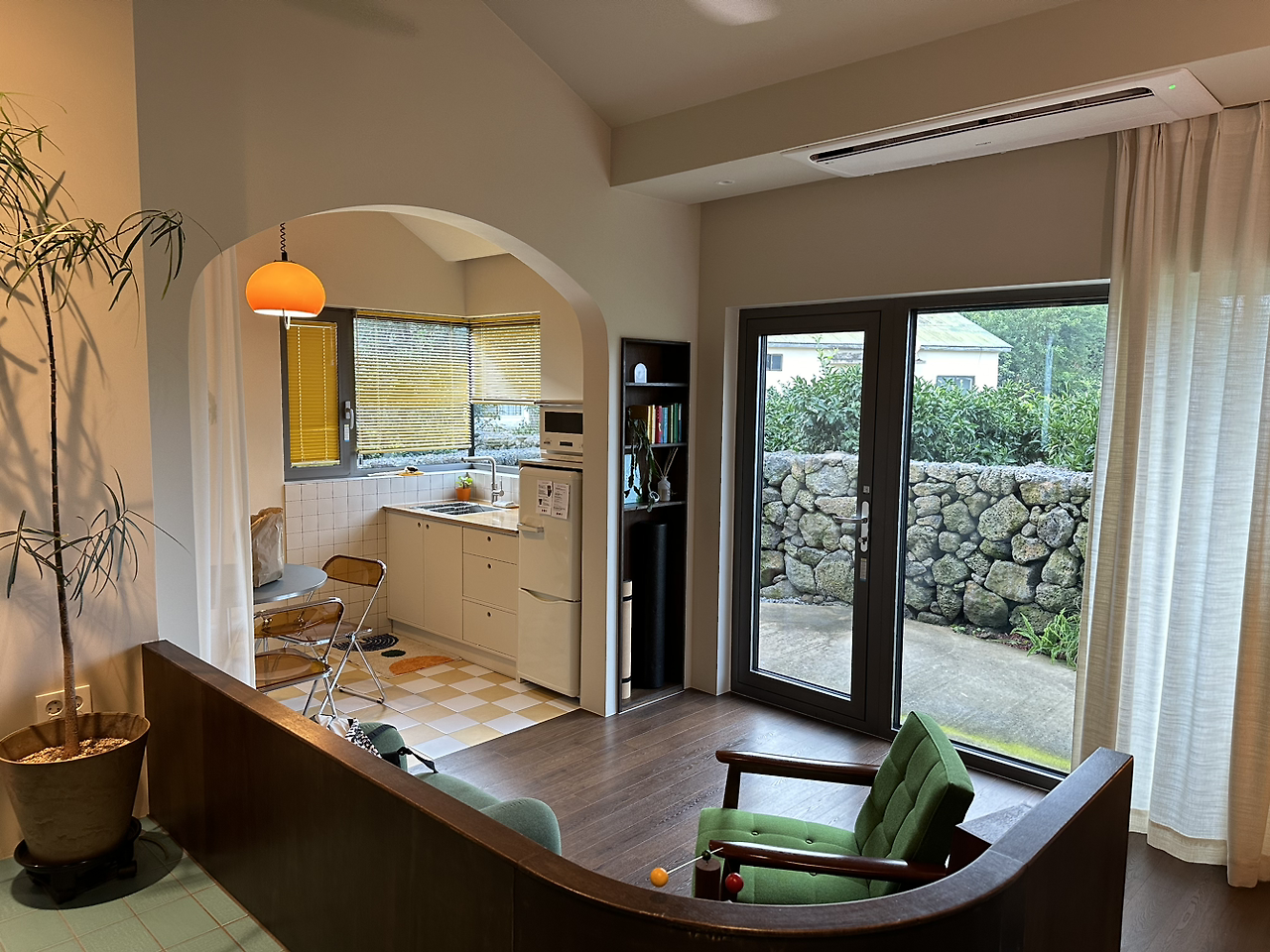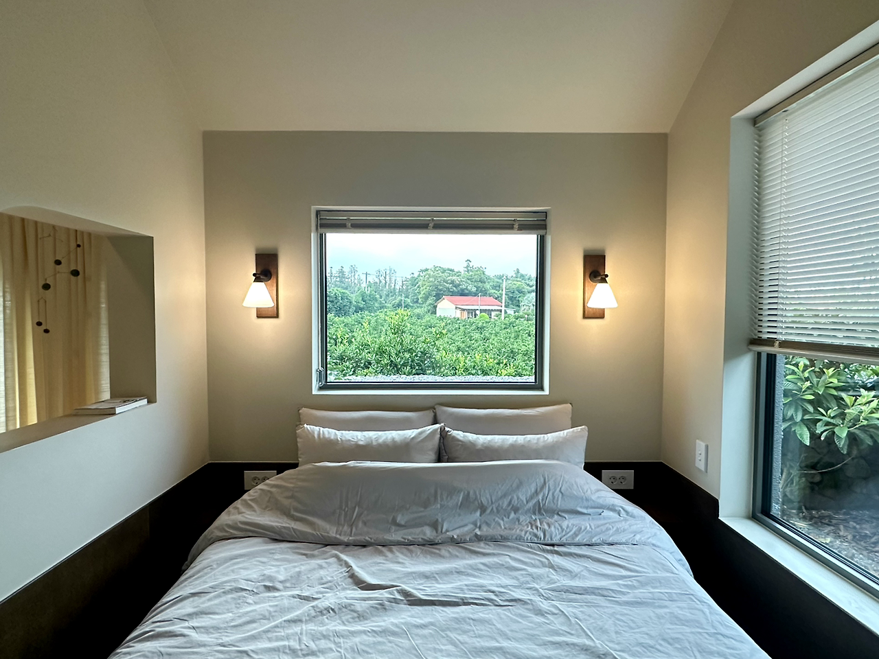 우리의 이번 여행 키워드는 '쉼'이었다. 바쁘게 돌아다닐 생각이 없었기 때문에 제일 중요하게 생각했던 것은 숙소였다. 평소 후배가 눈독 들이고 있었던 곳에 예약을 하게 됐는데 이곳은 정말이지 혼자만 알고 싶을 정도로(숙소사업에는 도움이 되지 않겠지만) 완벽한 숙소였다. 먼지 한 톨 찾아볼 수 없었던 숙소의 청결 상태와 감각적인 인테리어에서 사장님의 치열하고도 끈질긴 고민과 정성이 느껴졌고, 창밖으로 보이는 제주의 초록뷰는 밤낮으로 무한 힐링을 선사했다. 우리는 이곳에서 책도 읽고, LP도 듣고(하나 깨 먹었다), 고등어 회도 먹고, 술도 마시고, 수다도 떨고, 아침도 먹고, 요가도 하고, 멍도 때리고, 꿀잠도 잤다. 더없이 충분한 곳에서 충분히 휴식을 즐겼다.