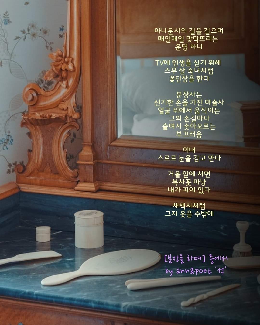 사람마다 다 다르겠지만, 저는 분장을 받을 땐 밀려오는 쑥스러움에 스르르 눈을 감곤 했습니다.