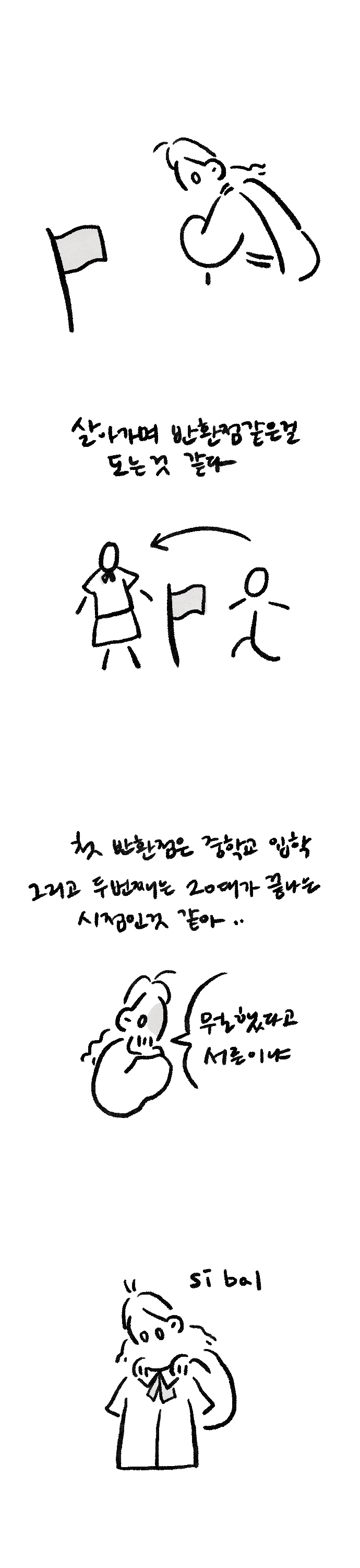 첫 반환점은 아마 첫 교복을 입던 때가 아닐까? 교복의 무게감은 생각보다 크기 때문이다. 그리고 교복을 벗고 대학에 들어간 것과, 이십 대를 지나 서른이 된 것. 이것 또한 반환점이라 할 수 있을 것이다. 일단 나는 두 개의 반환점은 엉망으로 돌았다. 그래서 기록이 엉망인 것이다.