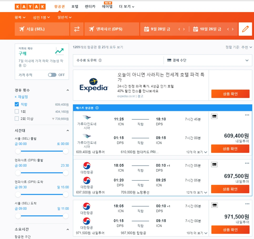 사실 카약으로 예매해본 적은 한 번도 없어서 따로 후기 제공은 어려우나 해외 다구간 설정 시 항공권 가격이 굉장히 저렴하다고 한다.