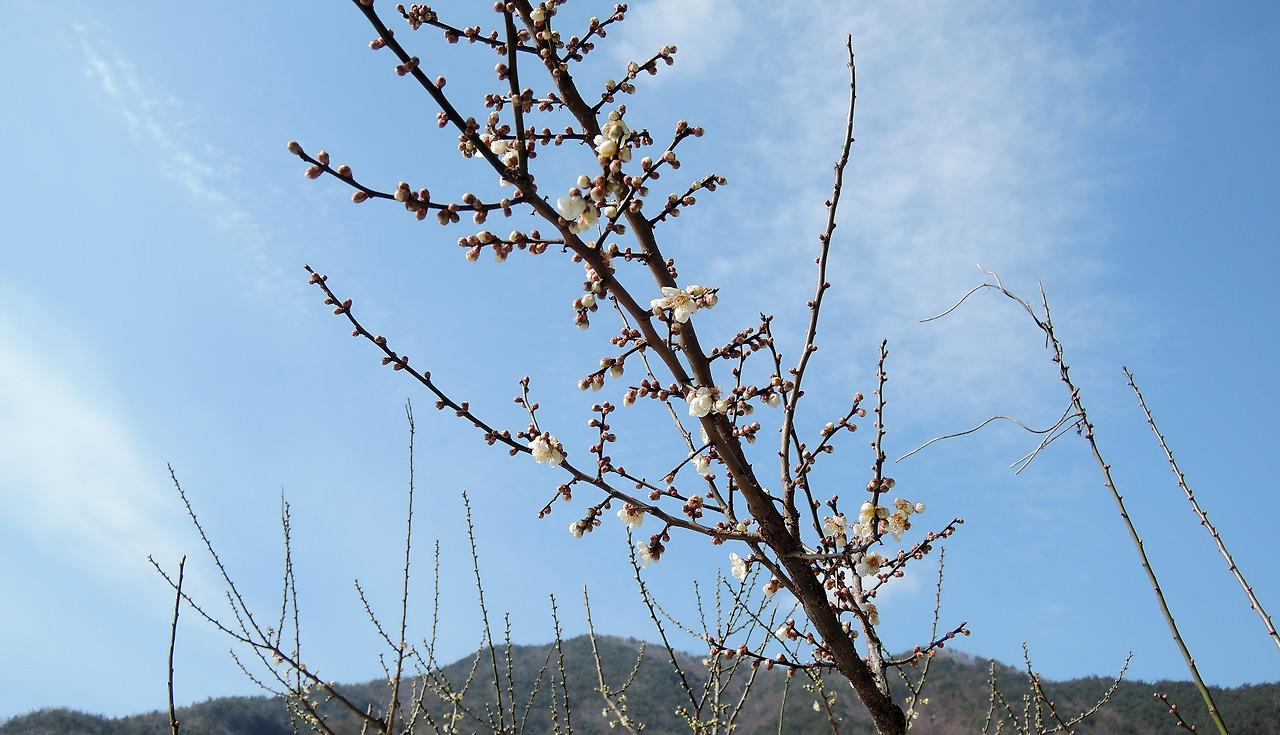 매화마을에 꽃이 올라왔다.