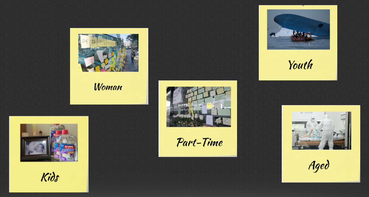#2. 아이들의 죽음을 덧대어 보다 이내 깨달았습니다. 아이들만이 아니라 우리도 여전히 배 안에 있다는 것을요. 아이들을 놓친 그 자리가 기울어진 사회의 한 단면임을 알았고, 이후 또 그렇게 놓쳐야 했던 강남역과 구의역의 친구들을 비롯한 많은 분들을 떠나보내고서야 사회 안에서 이 참사가 현재진행형임을 알았습니다.
