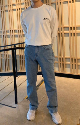 그러면 내가 생각하는 85점의 룩은 뭘까? (위 사진 참고) 얼마 전에 구입한 흰 면티와 와이드 진이다. 내가 85점을 주고 싶은 옷 조합이다. 위에서 언급한 모든 조건을 충족하는 내가 만들고 싶은 '나의 시그니쳐 룩'의 대표적인 예시이다. 넉넉한 핏의 흰 면티 + 와이드 진 + 흰색 러닝화. 근래 가장 맘에 드는 나의 꾸안꾸이다.