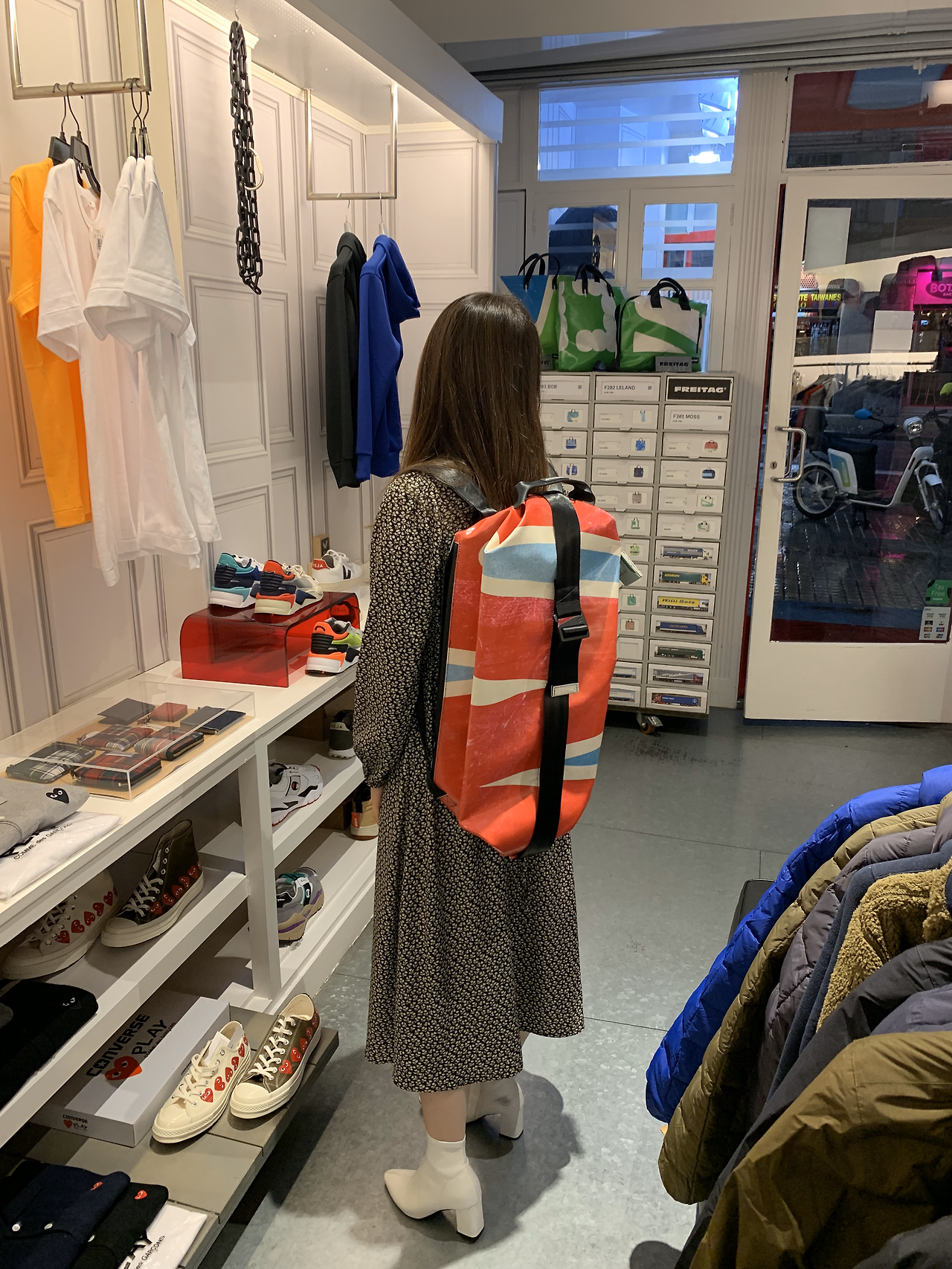 다음은 지갑과 신발이다. 지갑은 항상 포인트가 될 수 있는 디자인으로 산다. 단조로운 색과 같이 있을 때 빛나는 아이템이다. 신발은 흰색을 좋아하는데 가끔 형광색처럼 독특한 색감이 은은하게 들어간 걸 좋아한다. 형광이 들어간 신발만 현재 4개 보유 중이다. 지난달에도 형광 들어간 신발을 사버렸다.