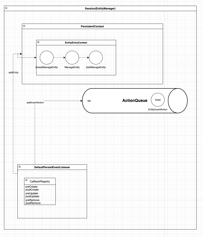 Session/EntityManager의 구현체인 SessionImpl과 PersistentContext의 구현체 StatefulPersistenceContext를 기준으로 설명한다.