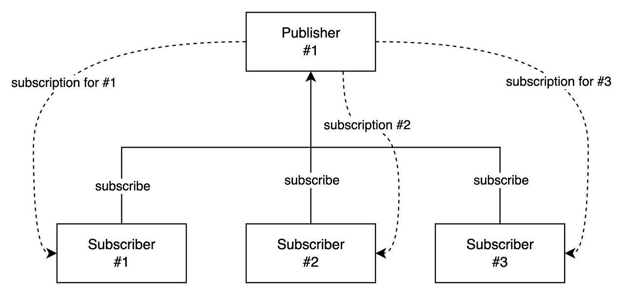 5. Publisher, Subscriber는 Subscription를 통해 상호 작용한다.