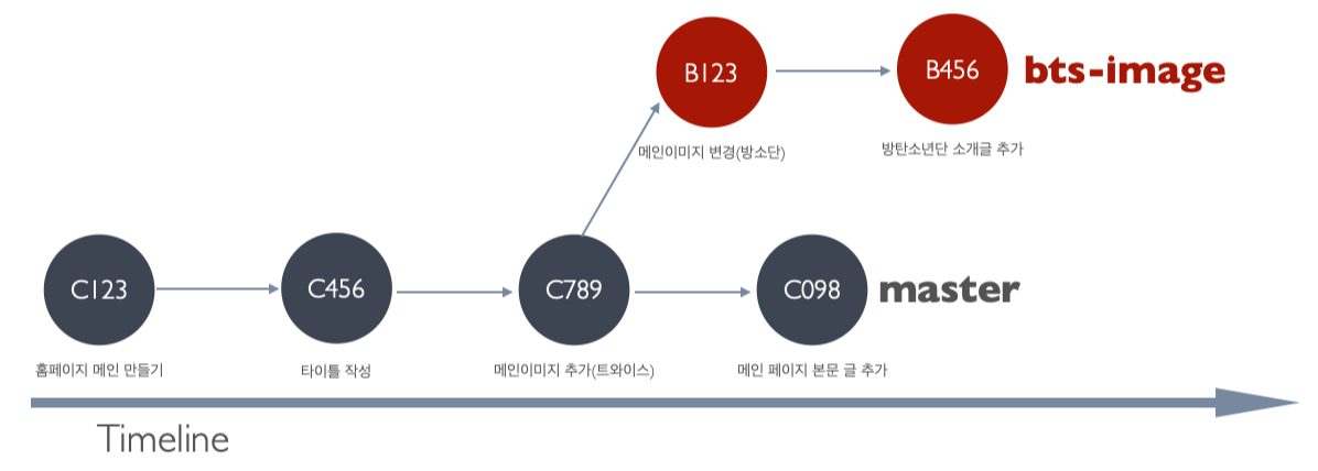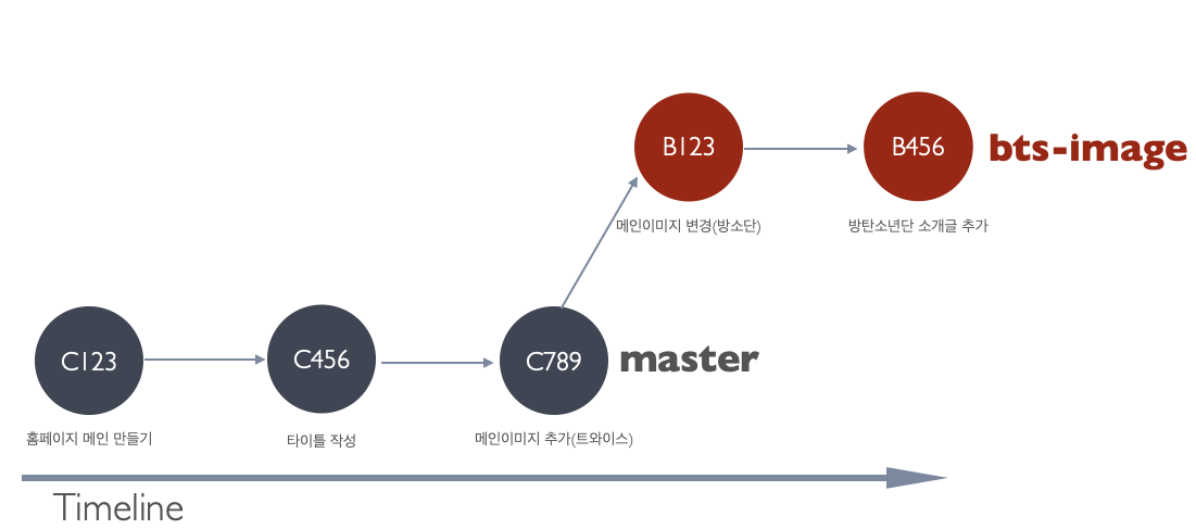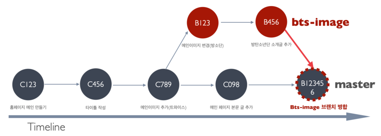 git checkout -b bts-image => (변경 & 커밋) -> git checkout master => git merge bts-image => (파일 병합) =>git commit