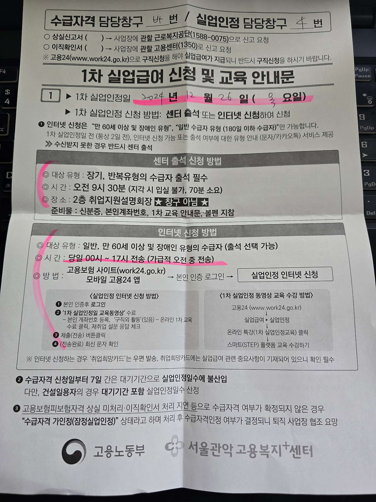 실업급여를 신청하러 고용복지센터를 방문했다. 최종면접에서 떨어진 후 단 하루 만의 일이다. 약 1년 반만에 또다시 실업급여 신청이다. 한때는 직장을 다니며 하루하루 바쁘게 살아가던 내가 이제는 실업급여를 받기 위해 서류를 작성하고 줄을 서고 있다. 뭔가 이상하다는 생각이 든다.