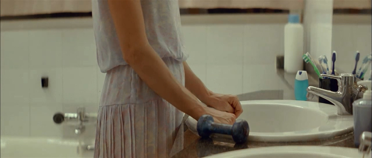 일반적인(?) 손목 긋기 같은 건 취급하지도 않는다. <송곳니>에선 아령의 치과적 사용법을 보여주고(일명 원펀치 쓰리 강냉이), <더 랍스터>에서는 코피를 흘리려고 얼굴을 박고, <킬링디어>에선 예시를 친절히 몸소 보여주기 위해 자기 팔을 물어뜯고, <더 페이버릿>에선 맞은 거 침소봉대(일종의 전시행정)하려고 또 얼굴을 들이받는다. 그리고 자살도 빨리 죽여주질 않는다. <더 랍스터>에서 자살하려고 뛰어내린 여자는 하필 애매하게(?) 떨어져서 즉사하지도 못하고 고통을 길게 맛보며 죽는다. 그렇다면 이것은 단순 자살인가, 아니면 자해가 죽음으로 이어진 것인가...