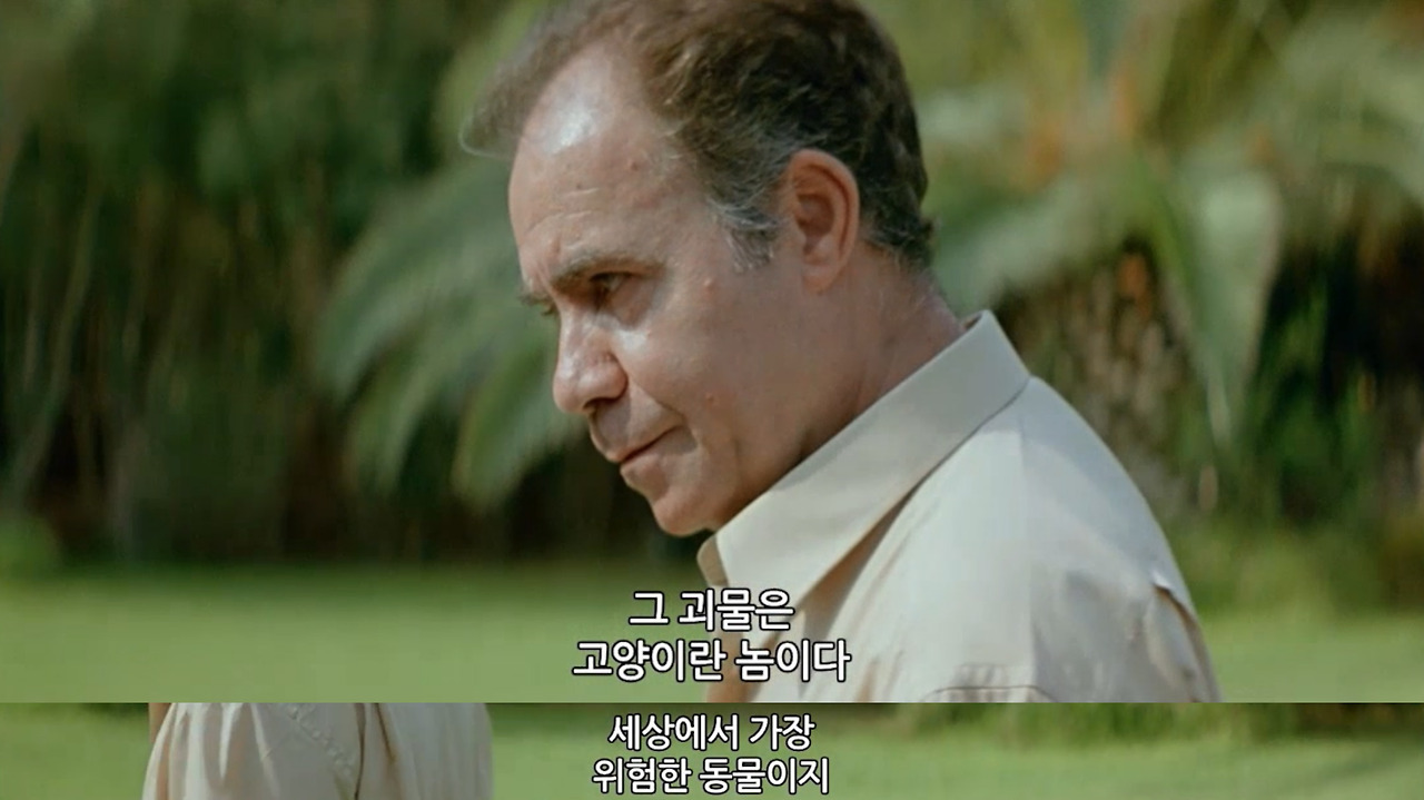 <송곳니>에서 고양이는 시방 위험한 짐승이라 정원가위로 찔러 죽이고, <더 랍스터>에서는 아예 오프닝부터 망아지를 총으로 쏴죽이며 시작해버리더니 개는 죽을 때까지 발로 차 죽인다(심지어 양발이 아니라 한쪽 발로만). 사실 짝을 못 찾으면 동물로 변해야 하는 설정부터가... <더 페이버릿>에선 새를 총으로 쏴 죽이는 걸 놀이로 즐겨한다. 아, 토끼 학대는 덤... <킬링디어>에선 그런 장면이 안 나오는 대신 아르테미스 사슴 죽인 신화를 모티브로 하고는 영화 제목(The Killing of a Sacred Deer, 직역하면 성스러운 사슴 죽이기)으로 마무리한다. 사실 마지막 방법이 제일 기괴하다.
