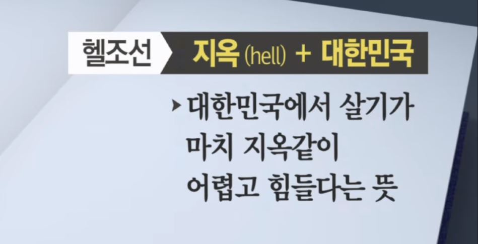 ‘헬조선’이라는 단어가 모두에게 통용되는 말이 된 건 어떤 식으로든 사람들이 헬조선의 뜻을 인지하고 있다는 것, 그리고 꽤 많은 사람들이 이에 공감한다는 얘기다. 사실 여기에서 객관적인 지표는 큰 의미가 없다. 객관적 지표가 무슨 말을 해도, 주관적으로 어떻게 느끼는지가 개개인에게는 더 중요하다. 이런 자조적이고, 염세적인 단어가 쓰인다는 것은 그만큼 삶에 무기력한 사람들이 많아졌다는 뜻이다. 여기에는 언론과 정치인들이 행하는 단순한 접근이 아니라 근본적인 접근이 필요하다.