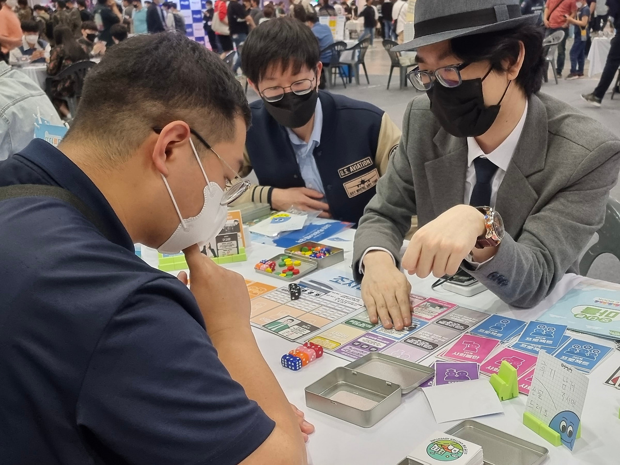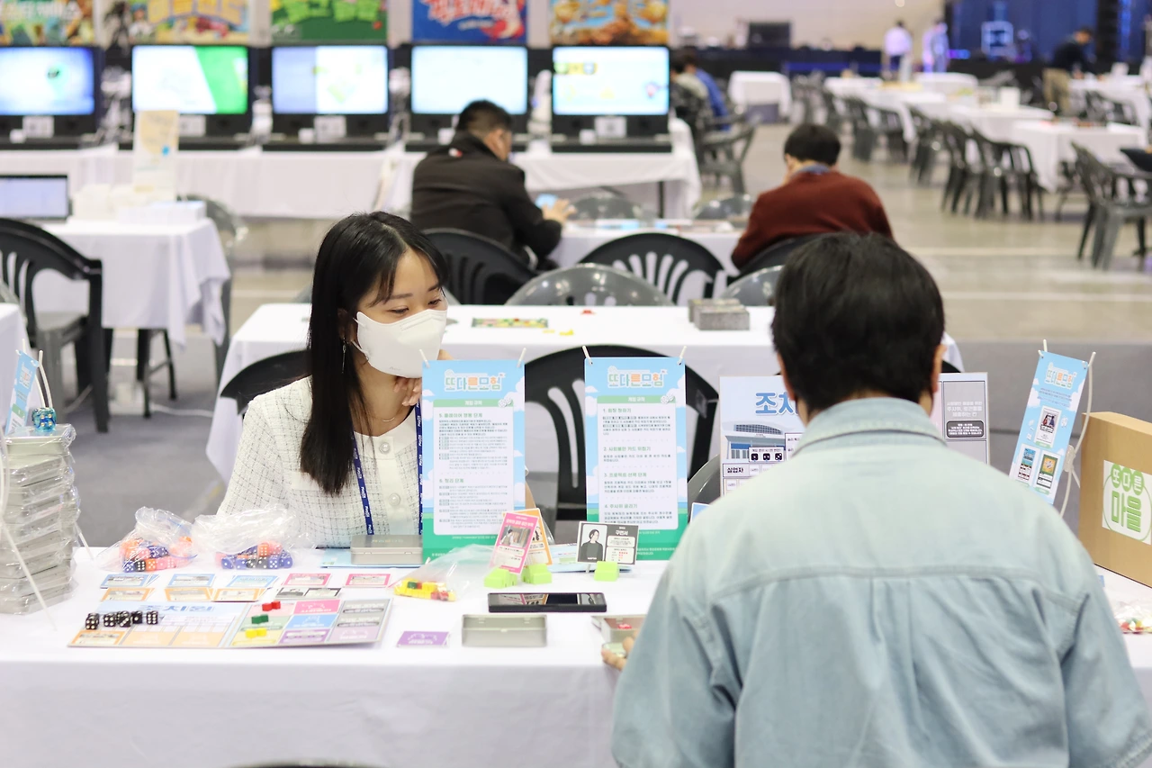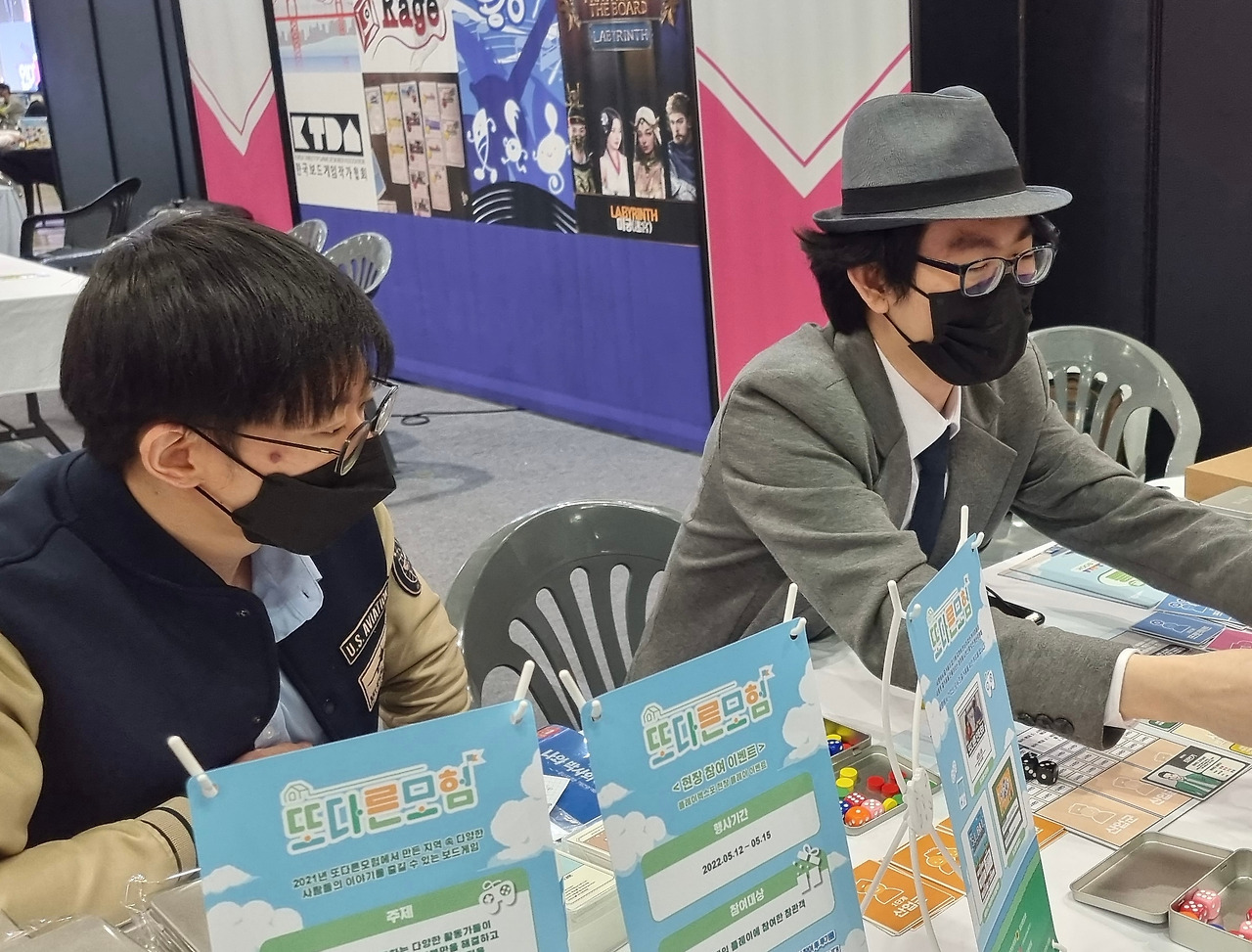 플레이엑스포에서는 또다른모험의 자체 제작 게임 '또다른 마을'을 선보였어요. '또다른 마을'은 플레이어가 지역 활동가가 되어 도시 내에 발생하는 사회불만을 해결하고, 새로운 프로젝트 전개 과정까지 경험할 수 있는 협력형 주사위 게임이에요. 게임의 목표는 다음과 같아요. 1) 각각의 활동가들이 가진 능력으로 사회불만 해결하기 2) 마을주민의 일자리 창출 및 또다른 마을을 세종시의 가장 행복한 마을로 성장 시키기