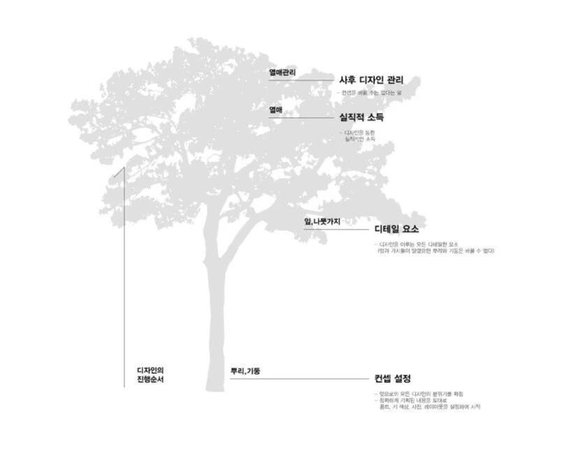 컨셉 = 나무의 뿌리와 기둥 / 디테일 = 나무의 가지와 잎
