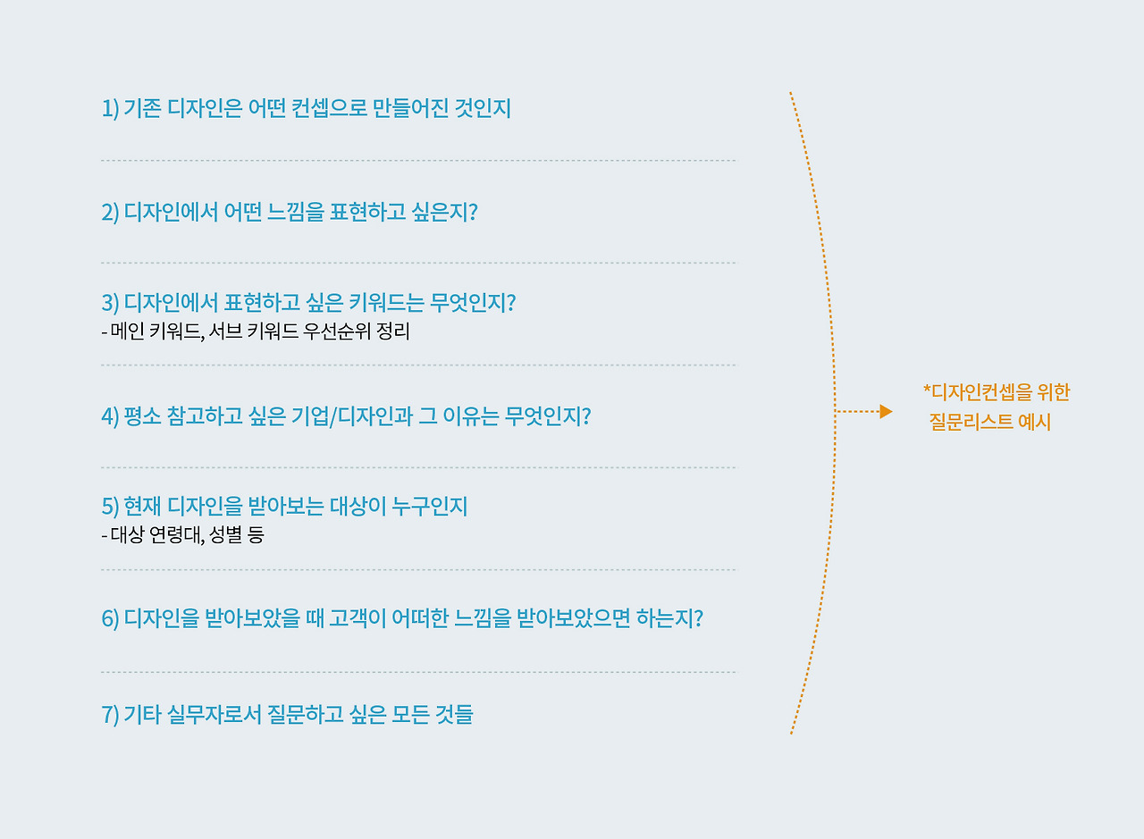 디자인 작업을 할 때에는 어느 정도 자신만의 질문 리스트를 만들어서 고객사와 논의하는 것이 좋습니다.