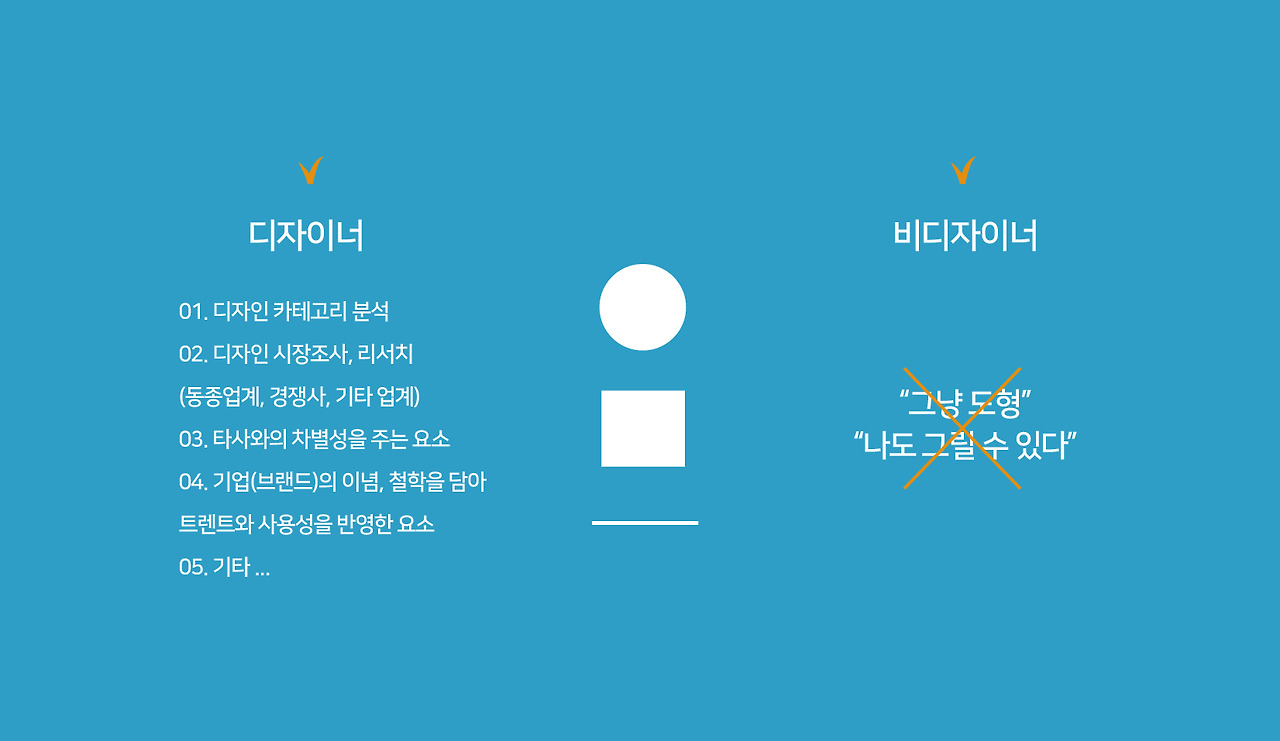 디자이너는 결과물 하나를 만들기까지 당신의 기업(브랜드)이 어떤 *카테고리에 있는지부터 분석을 한 뒤, 그 카테고리 범주의 동종업계 디자인을 분석하고, 경쟁사로 부터 어떤 차이점을 도출해낼지 연구를 합니다. 그렇게 심혈을 기울 혀 디자인을 한 결과물을 본 뒤 "이건 나도 그리겠다"라고 말한다면 어쩌면 당신의 기업(브랜드)을 위해 공부하고 노력한 시간이 한순간에 물거품이 돼버리는 말일지도 모르죠. 같은 원형 일지라고 해도 이것이 그냥 단순한 동그라미 일지, 트렌드를 반영하고 브랜드를 돋보일 수 있게 하는 디자인 요소인지 판별을 할 수 있도록 스스로 디자인 시각을 높여야 하는데 그게 어렵게 느껴진다면 아주 간단한 방법이 있습니다.