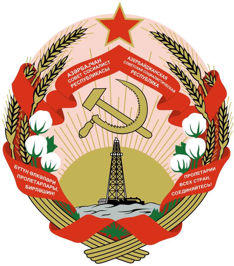 오른쪽부터 그루지아, 아르메니아, 아제르바이잔 소비에트 사회주의 공화국의 국장 19~20세기 초까지 직·간접적으로 제정 러시아의 지배를 받던 코카서스 3국은 1918년 4월 동맹을 맺어 <자캅카스 민주 연방 공화국>을 출범했고, 같은 해 5월 각각 그루지아, 아르메니아, 아제르바이잔으로 분할된 민주주의 공화국으로 독립한다. 2년 남짓한 짧은 기간 동안 독립국으로 존재하던 이들 국가는 1920년 붉은 군대의 침공을 받아 소련에 편입되어 1922년 <자캅카스 소비에트 연방 사회주의 공화국>을 결성해 소비에트 연방 창설 가맹국으로 참여한다.