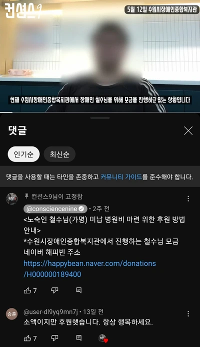 연락이 된 유튜브 채널은 '컨션스 9'이라는 채널로 구독자 14.9만 명이 되었고 전직 기자 출신 두 분이 운영하시고 계셨다. 처음에는 미심쩍은 면이 있었지만 업로드되어 있는 영상들을 보니 기자로서의 책임감을 가지고 사회 여러 이슈들을 취재하는 채널이었다. 그렇게 채널의 PD님과 통화를 하고 최종적으로 복지관에서 인터뷰를 진행하기로 했다. 인터뷰를 해서 본인의 살아온 이야기를 하고 복지관에서 진행하고 있는 네이버 해피빈 모금을 댓글란으로 공유해 후원을 받기로 했다.