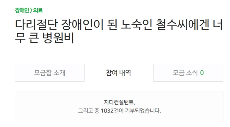 이번에 복지관에서 진행한 모금은 노숙생활을 오랫동안 하시다가 당뇨로 인해 다리절단을 하게 된 한 장애인 분의 병원비를 지원하는 모금이었다. 병원비가 약 500만원 정도가 채납되어 있었고 근로를 하기 어려운 상황이었기 때문에 계속해서 병원비가 늘어나고 있는 상황이었기에 모금을 진행하기로 결정하였다.