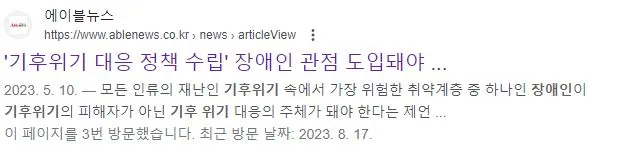 “ ‘기후위기 대응 정책 수립’ 장애인 관점 도입돼야 " (에이블 뉴스 2023.05.10)