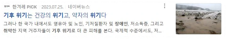 “기후 위기는 건강의 위기고, 약자의 위기다" (한겨레 2023.07.25.)