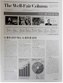 두 번째 복지 칼럼은 우선 각자 관심 있는 주제를 정하기부터 시작했다. 나는 개인적으로 ‘중년 남성의 고독사’에 관심을 가지고 작업을 했다. 관련된 기사 내용과 논문을 찾아보며 문제점과 해결방안에 대해 고민했고 심화 발제를 통해 학회원들과 내용을 공유했다. 그리고 학기를 마무리할 무렵 그 과정을 하나의 칼럼으로 엮어냈다. 학회원들 모두 각자의 칼럼을 작성하여 신문 형식으로 편집하여 출력 후 학부 내에 배포했다.
