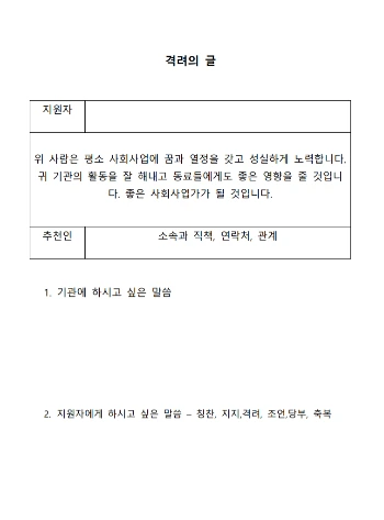 지원자는 항상 저에게 의지가 되는 좋은 친구입니다. 고등학교 시절부터 지원자를 따뜻한 행동과 말을 통해 저 스스로를 더 귀하게 바라볼 수 있게 되었고 더 좋은 사람이 되기 위해 노력하는 것을 지원자를 통해 배울 수 있었습니다. 지원자는 사람을 사랑스럽게 바라볼 수 있는 사람입니다. 그가 어떤 모습을 가지고 있는 것에 구애받지 않고 오로지 자신이 보는 그 사람의 모습을 믿고 지지해 줄 수 있는 힘이 있는 사람입니다. 이런 지원자의 장점을 통해 저 또한 저의 장점을 바라볼 수 있게 되었습니다.