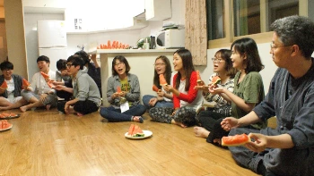그렇다고 계속해서 정말 공부만 한 것은 아니었다. 공부하고 있는 와중에 이렇게 전국에서 모인 사회복지대학생들을 응원하기 위해서 사회복지사 선생님들께서 지지방문을 오셔서 맛있는 음식과 좋은 이야기도 해주셨다. 김치와 밥으로만 식사를 하고 있던 이때 비영리 전문 컨설팅 ‘웰펌’의 대표이신 표경흠 선생님들께서 가져와주신 수박의 맛을 아직 잊지 못한다.