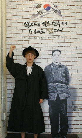 군산 근대 미술관에 있던 안중근 선생님의 사진 옆에서