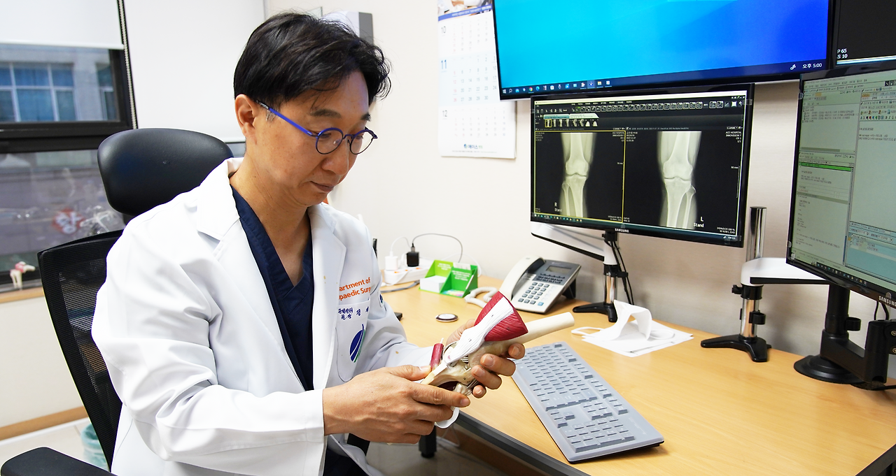 아킬레스건은 종아리 근육과 발뒤꿈치 뼈를 연결하는 단단한 힘줄을 말하는데요. 정재훈 원장님은 “인체에서 가장 크고 강한 건인 아킬레스건은 장딴지 근육인 비복근과 가자미근과 합쳐져서 족저굴곡의 중요한 기능을 하고, 걷고, 달리고, 점프할 때 지레대 역할을 하는 아주 중요한 기관”이라고 아킬레스건의 중요성을 설명해 주시네요.
