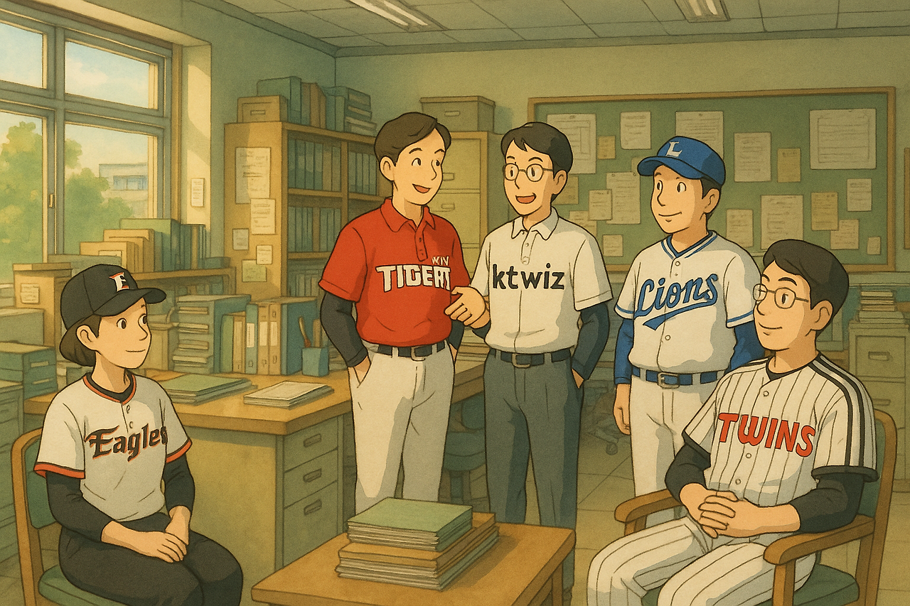 교무실에는 기아, 한화, 케이티, 엘지 그리고 삼성 팬이 포진되어 있었기 때문.