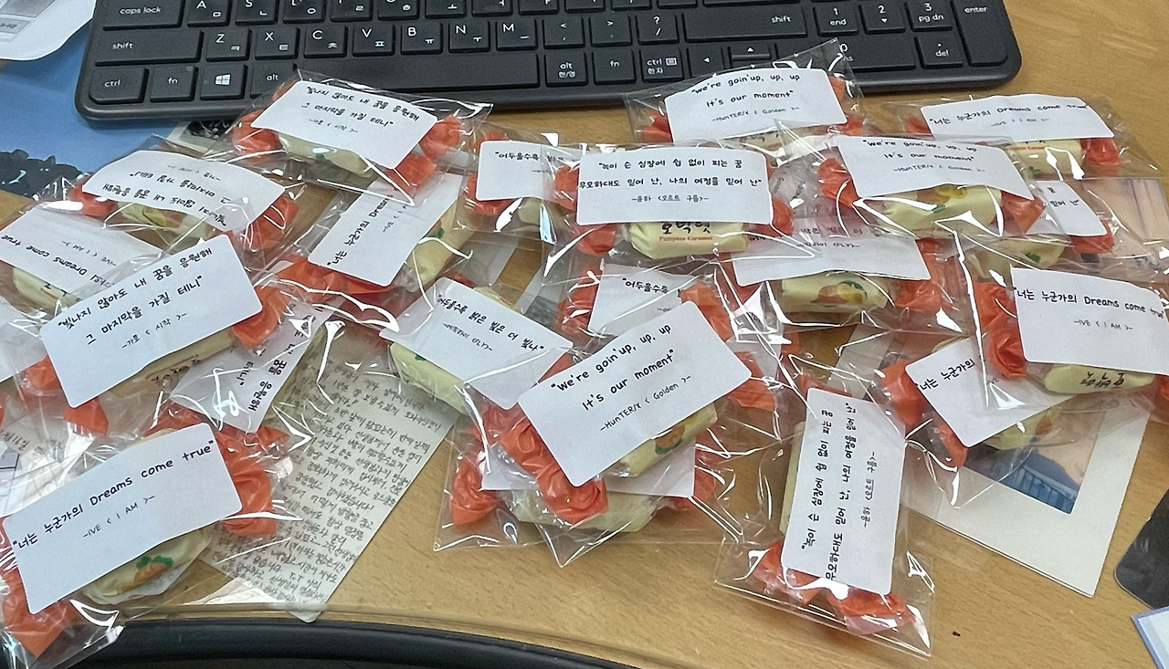호박엿 2개와 응원 문구를 붙여서 포장지에 담았다.