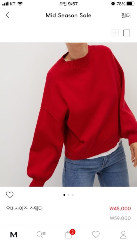 마지막은 쨍한 빨간색 니트.
