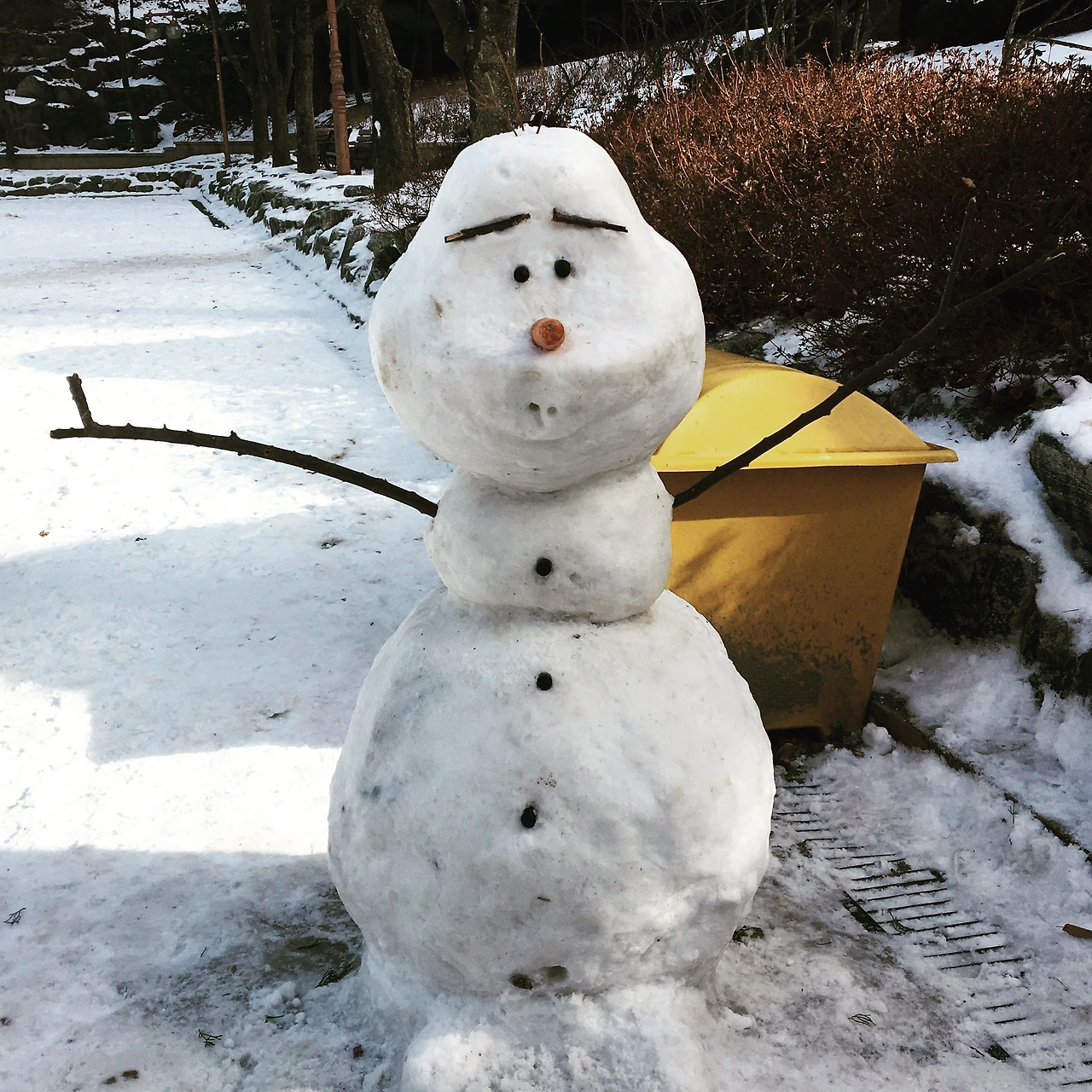 금손을 인정합니다.당근은 집에서 가져오신 듯.엄지 척!!(주민들에게 즐거움이 되고 있음. 다들 사진찍고 난리)전국 눈사람 토너먼트해도 잼날 듯. ㅋ#구미동울라프 #탄천눈사람 #울라프눈사람 #금손인정 #겨울낭만