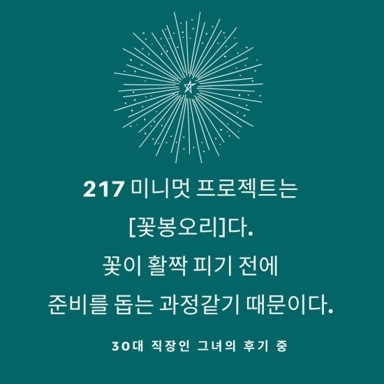그것이 제가 여러분과 공유하고 싶은 217 미니멋 프로젝트의 가치입니다. ^^