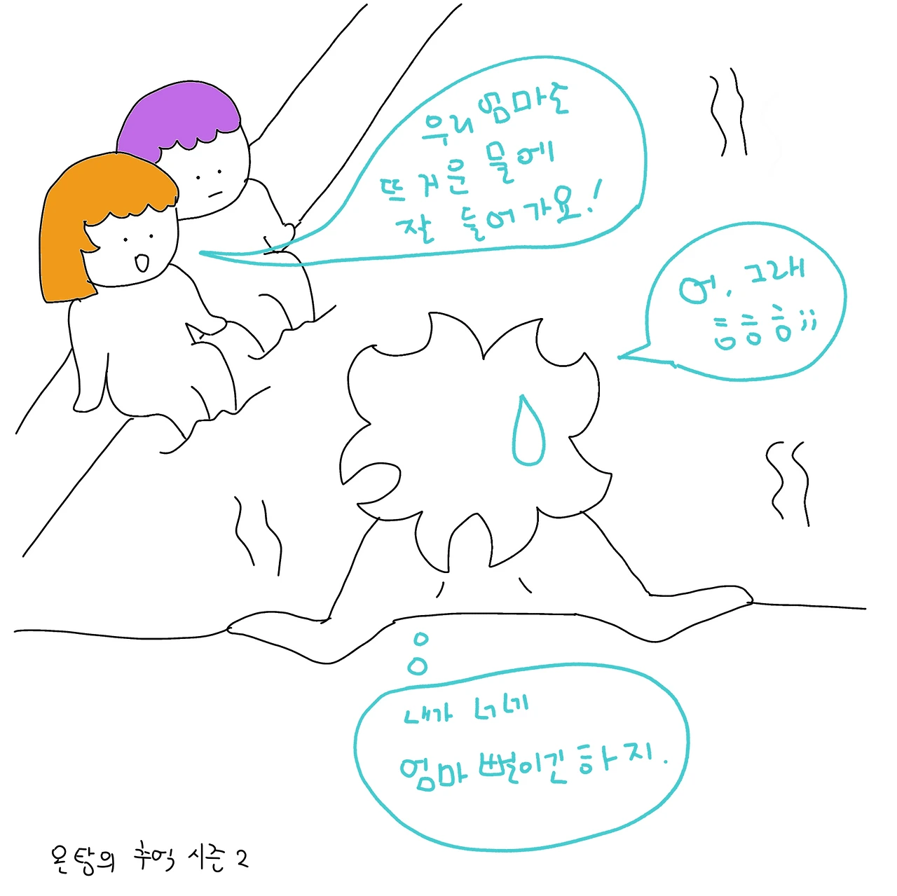 자기네 엄마도 뜨거운 물에 잘 들어간다고.