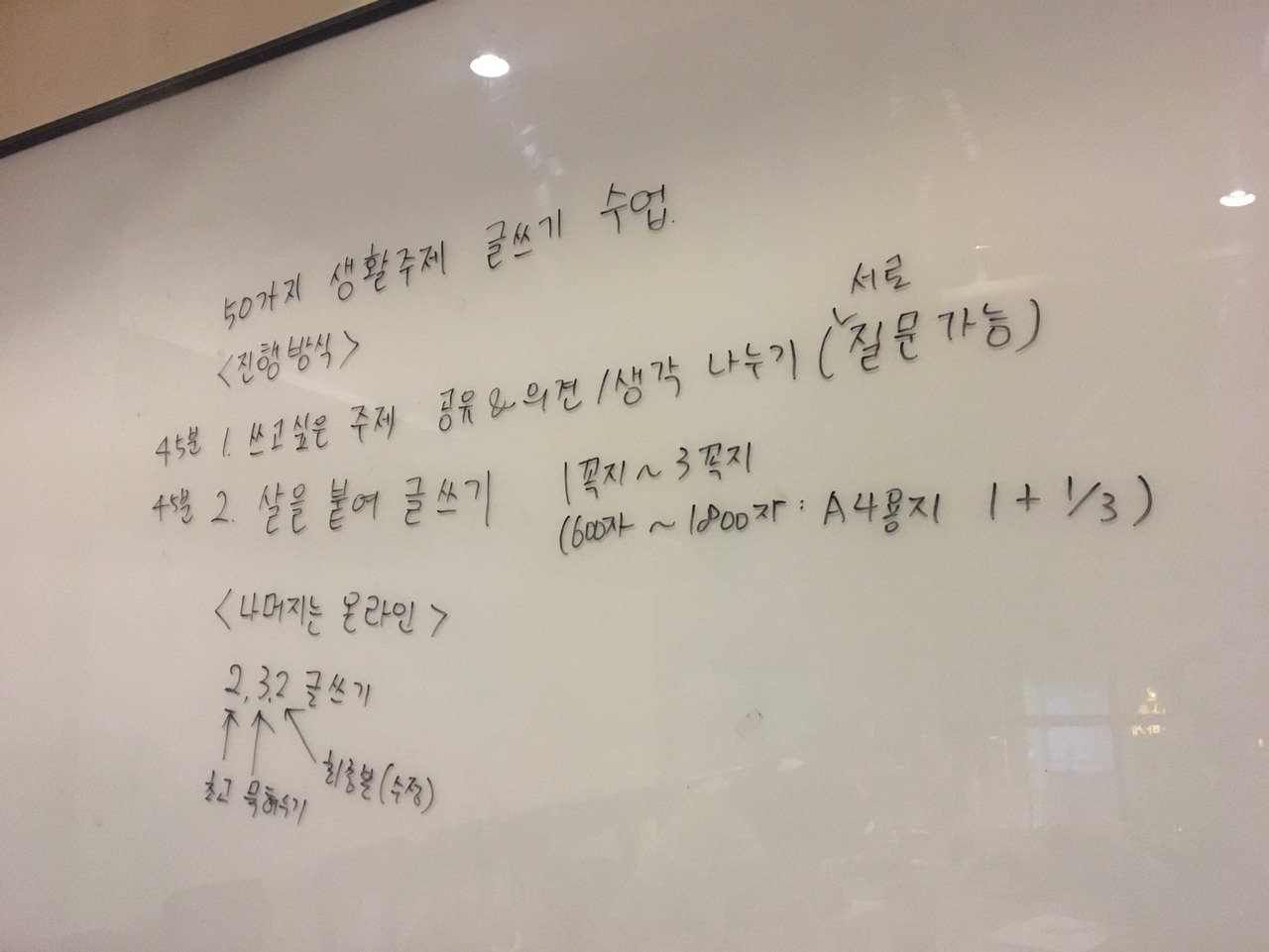 주제를 하나 정해 오셔서 이야기 나눈 후 글을 써볼 것이구요.