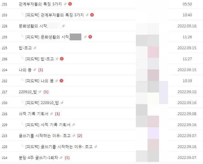 글쓰기 뿐만 아니라 글감에 대한 이야기를 나누고 코치가 궁금한 점에 대해 질문하는 시간을 갖습니다.