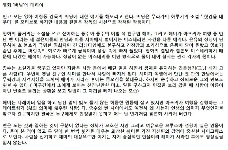 영화 버닝 리뷰를 써보고 싶다고 해서