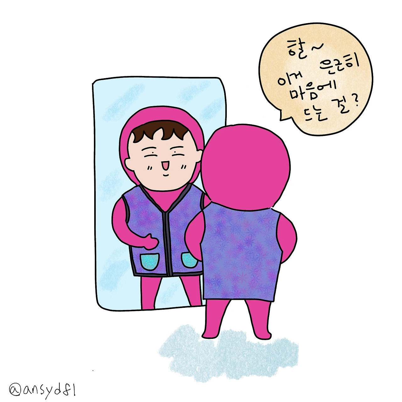 친구는 코스튬 같다고 하고, 엄마는 그걸 어째 밖에서 입냐고 했지만