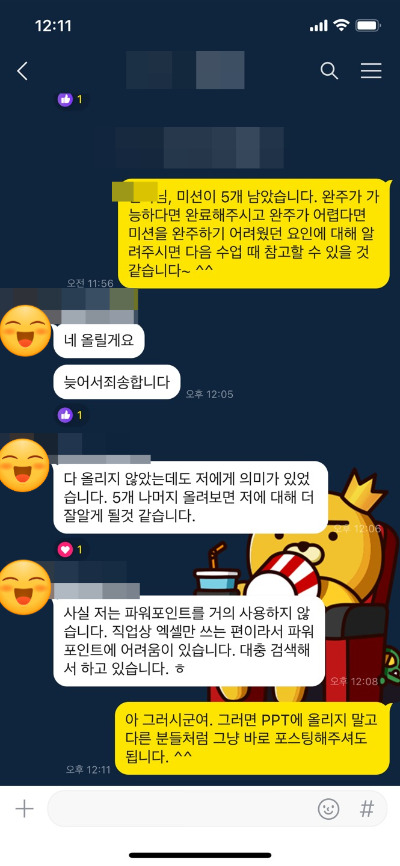 저런 피드백을 받으면 다시 기분이 뾰로롱~하고 좋아진다.