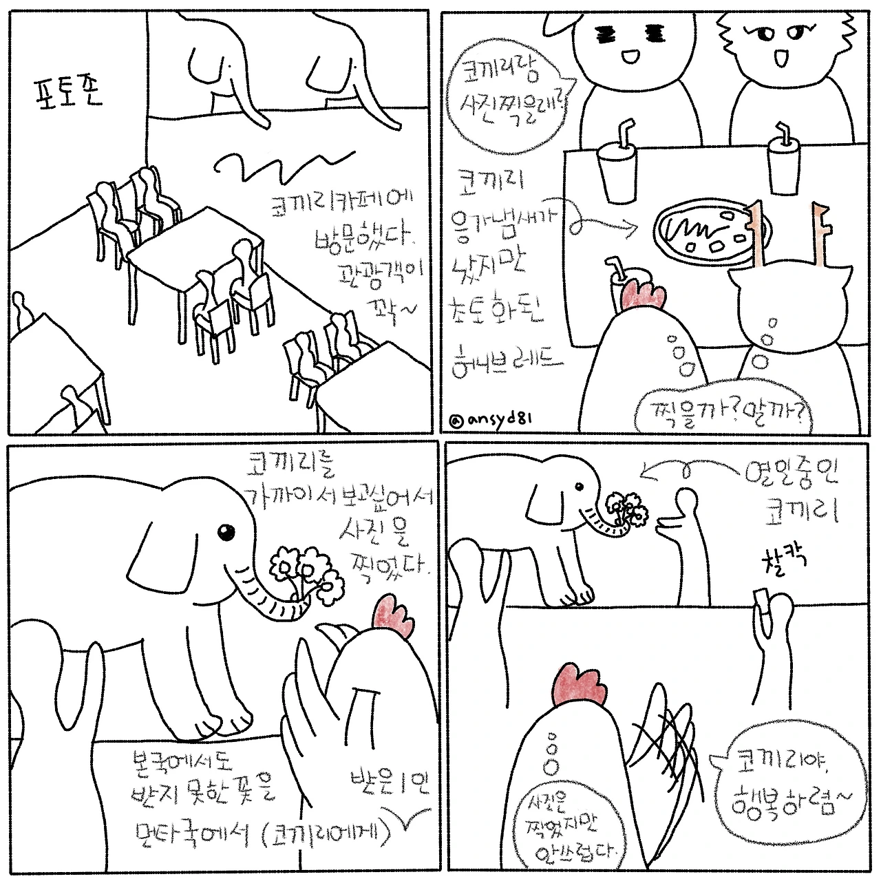 코끼리가 행복하길 바라며 자리로 돌아왔다.